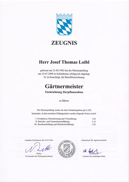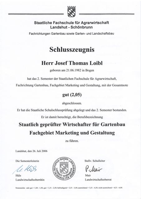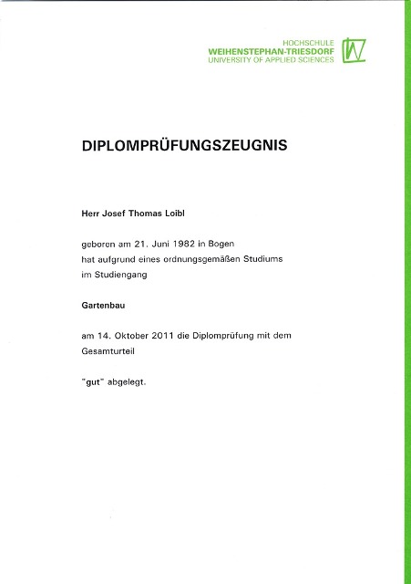 Von 2007 bis 2011 studierte ich an der Hochschule Weihenstephan-Triesdorf im Studiengang Gartenbau, unter anderen mit sehr guten Leistungen in den Studienschwerpunkten Gemüsebau und Zierpfanzenbau.